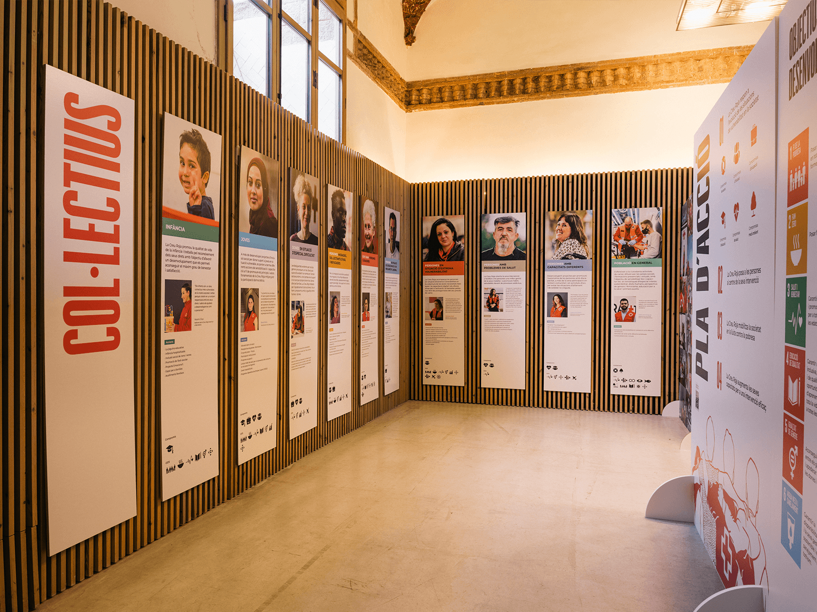Conceptualización, diseño y montaje de la exposición por los 150 años de Cruz Roja en Catalunya. Un proyecto expositivo que transforma historia en recorrido visual y experiencia.